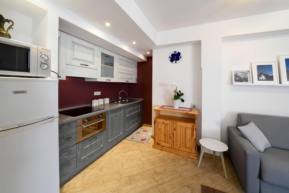 Byt s výhledem na dolomity se skládá ze dvou pokojů, jeden s manželskou postelí a druhý se 2 samostatnými lůžky, koupelny se sprchou, obývacího pokoje s kuchyní, plynovým sporákem, troubou a lednicí. Je vybaven pračkou, kromě samozřejmě nádobí a přikrývek. Disponuje vlastním vytápěním a úložištěm na lyže a boty, parkovacím místem. Ložní prádlo na požádání.