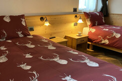 APARTMÁN JUMELA Rozložen na dvou patrech (první a druhé patro), může pohodlně ubytovat 4 osoby (2 ložnice a 2 koupelny). Obývací prostor s balkonem je tvořen jednou místností, se obývacím pokojem a kuchyní vybavenou myčkou, lednicí s mrazákem, indukčním vařičem a tradiční troubou. Jedna koupelna (s oknem) a sprchový kout. Komora se pračkou, vysavačem, žehlícím prknem a žehličkou.