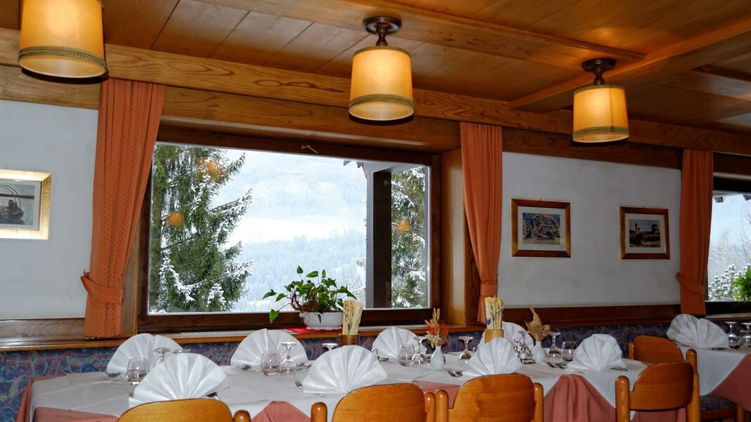 ledové paláce, krytý bazén, lyžařské tratě, více než 100 km, na Alpe Cermìs, v lyžařském centru Latemar, v Bellamonte/Alpe Lusia, v Lavazè/Oclini. V létě vám hory opět nabídnou odpočinek: Cavalese vám poskytne bezpočet výletů v Dolomitech, ale také pohodlné procházky a hry jako boccia, tenis, minigolf a další. Ale nyní se dostáváme k "domácím" tématům: náš hotel Panorama se nachází v mimořádně klidné poloze, velmi blízko dolní stanice nové lanovky, která vede do lyžařské oblasti Cermìs, a je 5 minut od centra. Hotel má 55 lůžek a je zařízen s vkusem a pohodlím: všechny pokoje mají sprchu nebo koupelnu a WC, telefon, televizor, balkon. Stube, bar, tavernička, terasa, solárium U.V.A., zahrada, sauna a prostorné parkoviště přispívají k tomu, aby váš pobyt byl ještě příjemnější.