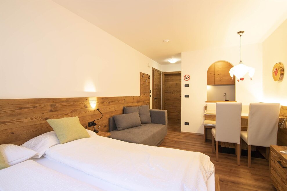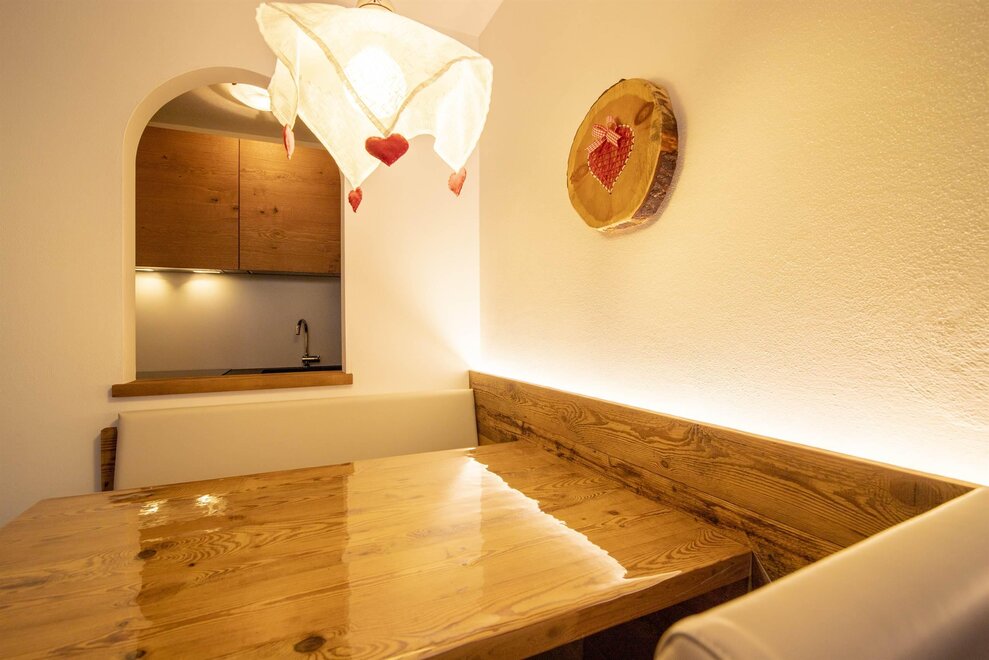 Každý apartmán je vybaven kuchyní s keramickou sklokeramickou varnou deskou, lednicí a myčkou nádobí, obývacím prostorem s TV sat a přímou telefonní linkou, koupelnou se sprchou a fénem, všechny mají balkon (kromě garsoniéry). Nacházíme se 100 m od historického centra obce a veškerých základních služeb. Máme také možnost využít službu ve spolupráci s restaurací a pizzérií v obci. Disponujeme tyrolskou chatou s TV, herním koutem a Wi-Fi připojením, soukromým venkovním parkovištěm a v létě prostornou sluneční terasou s lehátky, slunečníky, ping-pongem a hrami pro děti, k dispozici je box na lyže.