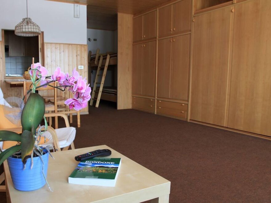 Jednopokojové apartmány, prostorné (cca 40 m²) pro 4 osoby, jsou velmi útulné a funkční. Po příchodu do apartmánu je zde vstup, který slouží také jako předsíň, ze které se vstupuje do místnosti přes chodbu, kde je umístěna patrová postel. Místnost se otevírá do obývacího pokoje, kde na zdi jsou dvě postele, z nichž jedna je manželská. Toto řešení umožňuje ušetřit značný prostor umístěním postelí vertikálně do skříně a získáním prostorného obývacího pokoje. Nakonec kuchyně, vybavená vším potřebným, může být, prostřednictvím posuvných dveří, oddělena od místnosti, aby se zabránilo šíření pachů.