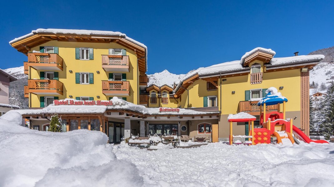 U nás se budete cítit jako doma, i když budete daleko. Hotel Rosa degli Angeli se nachází v Pejo Fonti, v srdci Národního parku Stelvio. Je jen kousek od lanovek, wellness centra a sportovního centra. Jakmile vstoupíte do našeho hotelu, najdete zde příjemné, typické, ale vždy inovativní prostředí, pečlivě upravené prostory a náš personál je vždy připraven zajistit vám dokonalou dovolenou. Můžete se věnovat mnoha aktivitám. Pěší výlety, jízda na horských kolech, jízda na koni... A pro nezvyklé zážitky si můžete bezpečně vyzkoušet rafting nebo hydrospeed. Milovníci sněhu se zde mohou vyřádit jak v zimě, tak i v létě ve výškách. Pejo je součástí ski areálu Skirama Dolomiti Adamello - Brenta s 360 km sjezdovek. Ale po tolika aktivitách není nic lepšího než relaxace s našimi wellness perlami? Bazén, turecká lázeň, finská sauna, biosauna, vířivka... přerušované fitness programem, který si můžete vyzkoušet v dobře vybavené posilovně. Takže to bude dovolená, která zlepší zdraví, udrží vás v kondici a uvolní tělo i mysl. Miniklub s animací na míru, zábavné a poučné pro děti, je také k dispozici mimo otevírací hodiny a to v doprovodu rodičů. Přebalovací pult v společných prostorách. Možnost hlídání dětí mimo hodiny animace. Ale štěstí také přichází skrze chuťové pohárky... Nechte se unášet našimi typickými specialitami. Navíc pro mámu a tátu nabízíme dovolenou bez starostí. Naše chůvy budou šťastné, že se postarají o vaše děti v dětské herně a na hřišti. Konečně, nacházíme se v Národním parku Stelvio, kde louky sahají k nebi a odkud vystoupíte za svými sny.