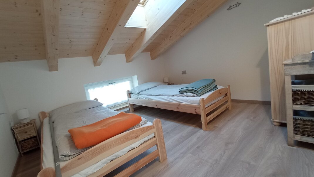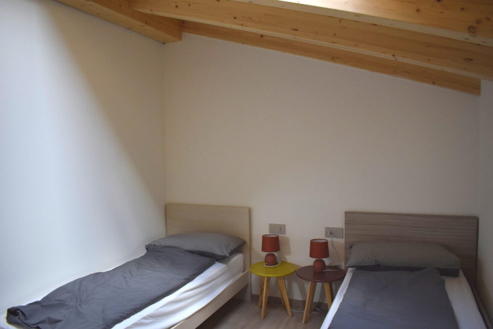 Přístup k bytu je z venkovního schodiště krytého střechou. byt je orientován na východ/jih/západ a skládá se z manželské ložnice a jednolůžkového pokoje se dvěma postelemi. Kuchyň s přilehlým obývacím pokojem má francouzské okno, které vede na balkon, ze kterého můžete obdivovat pohoří Dolomity di Brenta, Casale, Monte Gazza a Paganella, stejně jako vinice v údolí. Na našem pozemku je velká zahrada, kde si můžete odpočinout na slunci (a také ve stínu), uspořádat si aperitiv pod řadami kiwi nebo se houpat na hamace mezi olivovníky. Můžete přistoupit do zahrady, která je vybavena pro odpočinkovou pauzu na slunci, pro čtení vašich knih, pro degustaci osvěžujícího nápoje nebo si na aperitiv. Na zadní části domu si můžete dobít své elektrické kolo a na zemědělské ploše můžete zaparkovat své auto nebo motocykl. Své sportovní vybavení můžete uložit do sklepa.