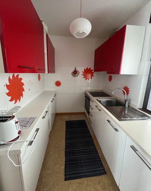nádobí k dispozici, žehlička, pračka, kuchyňský kout, obývací pokoj, topení, lednice, moderní vybavení nábytkem, store room, balkón, přikrývky, trouba