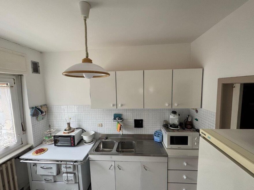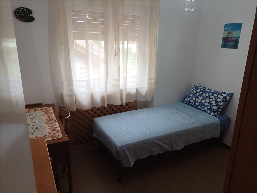 Světlý byt v rodinném domě se nachází v klidné oblasti, nedaleko centra a všech služeb, včetně supermarketu, pekárny a banky.