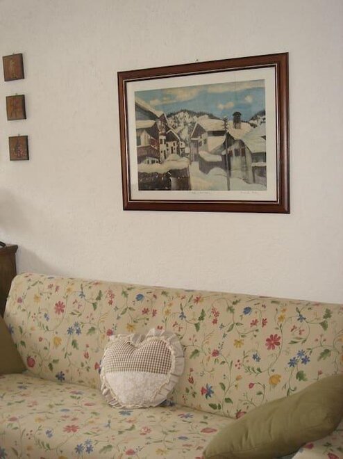 Apartmán se nachází v Residenci La Cigolera a je orientován směrem k rybníku Plank, vnořenému do lesa, s nádhernými špičkami S. Martino nad ním. Je vzdálen 150 m od centra (3 minuty pěšky), přímo naproti zastávce skibusu. Ubytování se nachází ve druhém patře a je ponořeno do ticha hor a přírody. Je tvořeno přibližně 40 m², rozdělených následovně: prostorný obývací pokoj s terasou (výhled na rybník) s rozkládací pohovkou pro dvě osoby (dva dostatečné místa), ložnice s terasou (výhled na rybník) se patrovou postelí a dalším vyjímatelným lůžkem, 1 kuchyňský kout s digestoří, 1 chodba a koupelna se sprchovým koutem + vyhrazené parkovací místo a sklep s dveřmi na lyže a dveřmi na boty. Stav apartmánu je vynikající s nábytkem na míru, což ho činí velmi funkčním a útulným. Je vybaven pračka a sušička, žehlička a žehlící prkno, TV a fén. Topení je centrální a probíhá prostřednictvím radiátoru. Je však možné přidat, pro ty, kdo si přejí, teplovzdušné topení (jako příplatek za topení v obdobích velkých mrazů) prostřednictvím knoflíku, který se nachází uvnitř apartmánu (není centrální). Cena je 1 euro za každý úkon měřiče, který odpovídá jedné hodině dodatečného topení. V případě použití se výpočet provádí změřením měřiče při příjezdu hostů a při odjezdu na konci pobytu. Rezidence navíc disponuje společenskou místností pro rekreaci. Správce rezidence vítá hosty při příjezdu a ukazuje apartmán. Také je k dispozici po celou dobu pobytu v případě potřeby. Lze ho kontaktovat, prostřednictvím intercomu, z vnitřku apartmánu. Úklid na konci pobytu je na náklady hostů a musí být proveden, za poplatek, správcem rezidence, aby bylo zajištěno, že hosté při svém příchodu vždy naleznou apartmán uklizený. Cena se dohodne přímo se správcem a závisí na stavu, v jakém ho nachází před odjezdem hostů. Domácí textil (ložní prádlo, ručníky), toaletní papír, čisticí prostředky a utěrky do kuchyně nejsou zahrnuty a musí si je přivézt nájemníci. Je možné mít bezplatné internetové připojení prostřednictvím recepce.