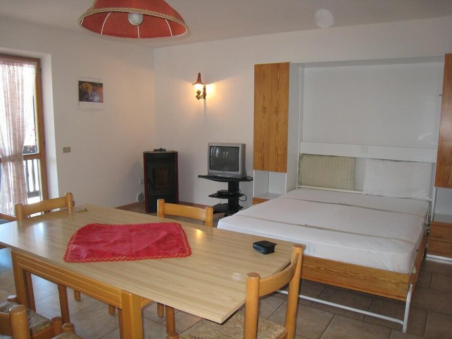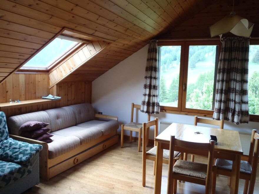 Jednopokojový byt o rozloze 46 m², dobře prosluněný. Byt se skládá z předsíně, 1 ložnice s manželskou postelí se balkonem, koupelny, kuchyňského kouta, obývacího pokoje/jídelny s výsuvným lůžkem (skříňková postel) a balkonem. Místnosti jsou obloženy dřevem; skvělá panoramatická expozice, úložiště lyží a nezakryté parkovací místo.