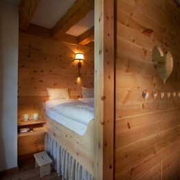 Aber die Natur pflegt und verwöhnt Sie hier auch abends in den Hotels und den Agritour-Betrieben, die Ihren Gästen Zimmer mit Einrichtung oder Verkleidung aus Zirbelkiefernholz bieten.