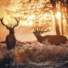 Verharren Sie noch eine Weile in der Stille und schärfen Sie Ihr Gehör. Mit ein wenig Geduld und Glück können Sie in der Ferne einen uralten Klang vernehmen, so imposant wie ein Schlachtruf und so romantisch, wie ein Liebesgesang: es ist das unverwechselbare Röhren der Hirsche. Haben Sie es schon mal gehört? Wir schon! Es ist ein Klang, der stundenlang in den Ohren nachhallt, im Herzen aber für immer verankert bleibt.