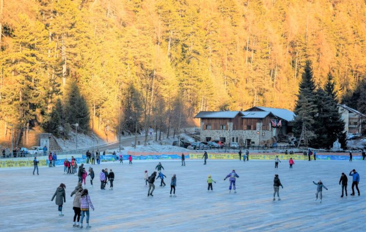 Feiern Sie den Fasching auf Schlittschuhen auf dem Lago Smeraldo in Fondo.
