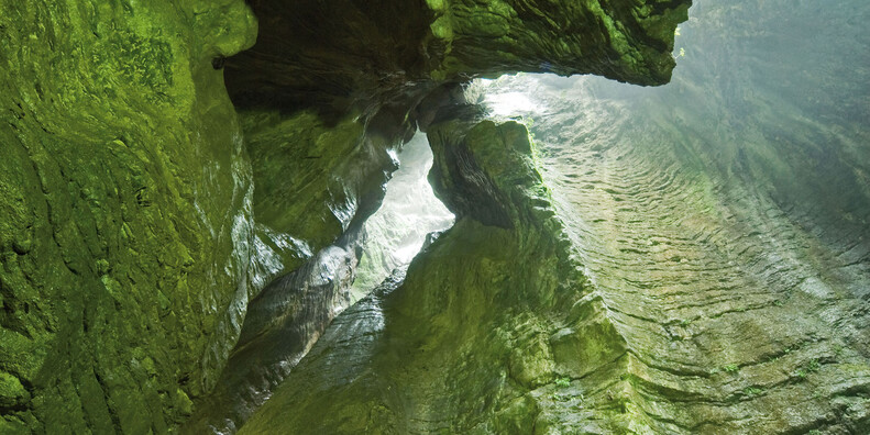 Dieser ungewöhnliche Wasserfall entsteht durch das türkisblaue Wasser des Wildbachs Magnone, der unter dem spektakulären See von Tenno fließt. Der Wasserlauf stürzt dröhnend in eine 98 m tiefe, durch die unaufhörliche Wucht des Wassers gegrabene Schlucht. Das Wasser hat auch zwei Grotten gebildet, eine tiefer liegende und eine höher gelegene, wo man das Wasser in den Berg fließen sehen kann.