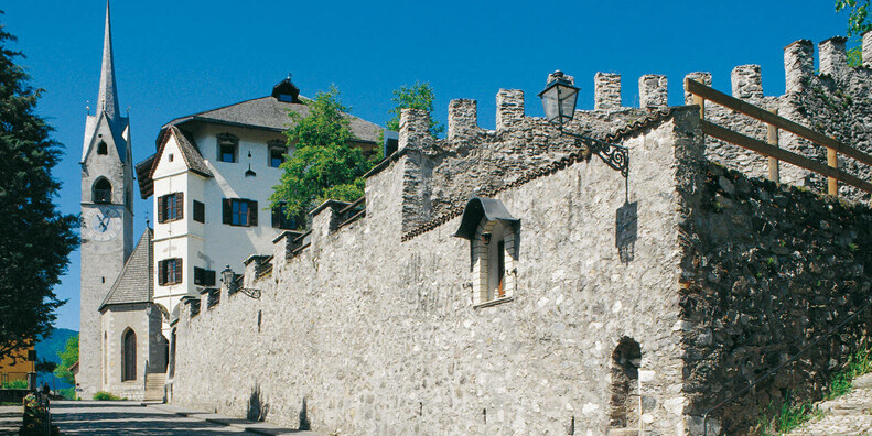 Bemerkenswert ist die große Freskenmalerei von Giangiacomo Roemer, ungefähr aus der Mitte des 16. Jh., die den verstorbenen Söhnen gewidmet sind: Eine Komposition im Stil der Renaissance, die die Farben und Insignien der Familie Roemer-Brandis und sechs weitere Adelsinsignien wiedergibt, darunter auch den Adler der Habsburger und die zwei Wappen der Welsperger, einem Herrscherhaus, das seit 1401 im Tal vertreten war. Während der kürzlich durchgeführten Restaurierungsarbeiten haben die Archäologen die Reste einer frühchristlichen Basilika aus dem 5. - 6. Jh. entdeckt.