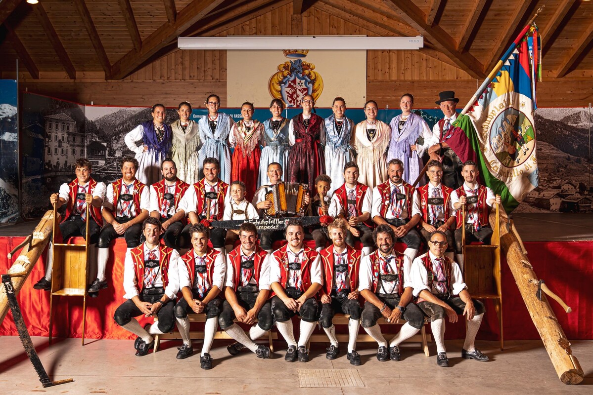 "Schuhplattler" ist ein deutsches Wort für eine besondere Form des bayerischen und Tiroler Männertanzes, die bereits um 1050 als eine Form des Balzens entstanden ist. Die Tänzer bewegen sich schnell, fast akrobatisch, und klatschen mit den Händen auf die Beine und Schuhsohlen. Sie springen, drehen sich, jodeln manchmal und klatschen einander spielerisch zum fröhlichen Rhythmus des Akkordeons. Die Gruppe Campitello, die offiziell 1980 gegründet wurde, aber bereits in den ersten Nachkriegsjahren dank der Lehren eines Jungen aus Völs am Schlern (Seiser Alm) entstand, kann auf Auftritte beim Münchner Oktoberfest (1981) und bei der Eröffnungsfeier der Olympischen Spiele in Turin (2006) sowie auf Auftritte in den italienischen Fernsehsendungen "Le Iene", "Quelli che il calcio", "La prova del cuoco" und "Chi ha incastrato Peter Pan" verweisen. Die etwa zehn Choreografien, die die Schuhplattler de Ciampedel aufführen, sind mit lokalen Traditionen verknüpft, wie dem Tanz des Mähers, dem Fest oder dem Holzhockertanz. In einer kurzen Präsentation werden sie vorgestellt und ihre Geschichte und Bewegungen kurz erläutert. Die fünfzehn Tänzerinnen und Tänzer werden von Mädchen und Frauen in typisch ladinischer Tracht begleitet, die auch bei einigen Tänzen mitmachen.