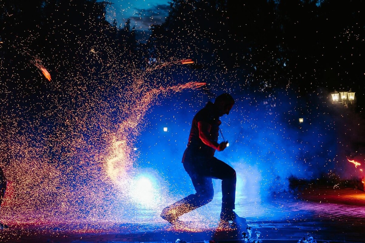 Leuchtende LEDs, Lichtspiele und tanzende Flammen verbinden sich in atemberaubenden Choreografien, die stimmungsvolle Atmosphären schaffen und Momente reiner Magie erzeugen. Jede Bewegung, jeder Funke und jeder Rhythmus sind darauf ausgelegt, das Publikum zu beeindrucken und zu fesseln, in einem perfekten Gleichgewicht zwischen Technologie, Kunst und Leidenschaft.