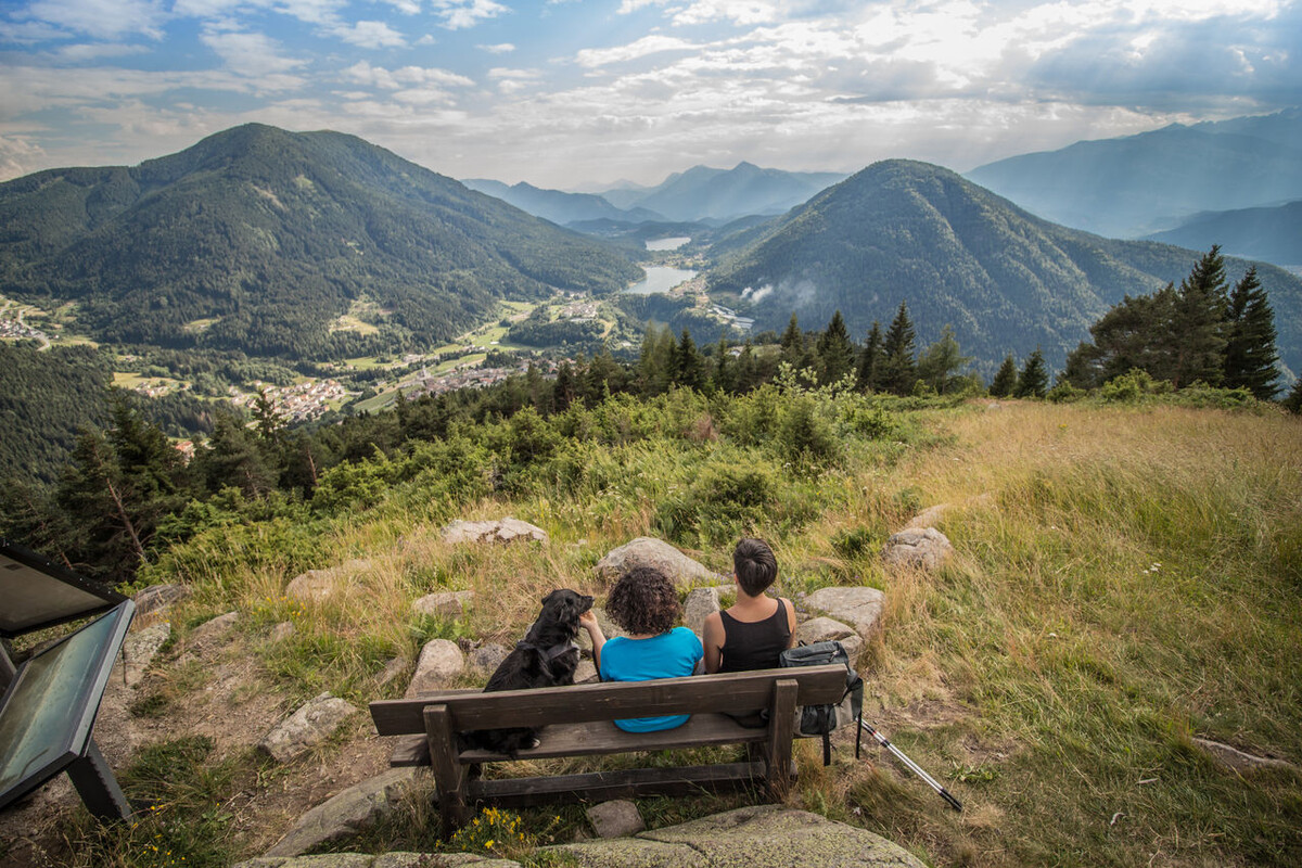 Das Dorf Bedollo lädt wie eine große Panoramaterrasse dazu ein, eine herrliche Aussicht über die gesamte Hochebene von Piné zu genießen. Wenn Sie der Forststraße folgen, die vom Parkplatz in der Nähe der Alpinen Hütte beginnt, erreichen Sie in etwa einer Stunde sanften Aufstiegs das weiße Kreuz auf dem Gipfel des Hügels, das Cròs del Cuc genannt wird. Von hier aus können Sie einen der besten Ausblicke auf die Hochebene von Piné genießen, die auf die Seen von Piazze und Serraia blickt; im Hintergrund können Sie auch die Paganella, den Monte Bondone und den Monte Fravort erkennen.