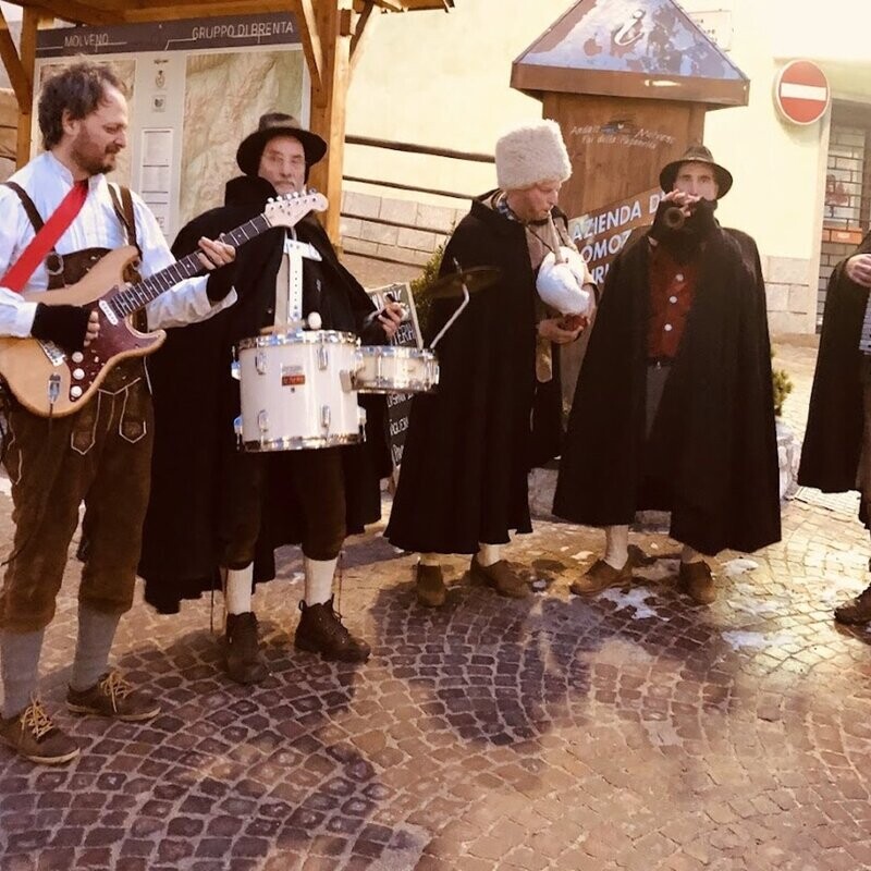 Blasinstrumente, Dudelsack, Ziehharmonika und Schlagwerk: Die typischen Klänge des Trentiner-Tiroler Weihnachtsfestes kommen nach Molveno.