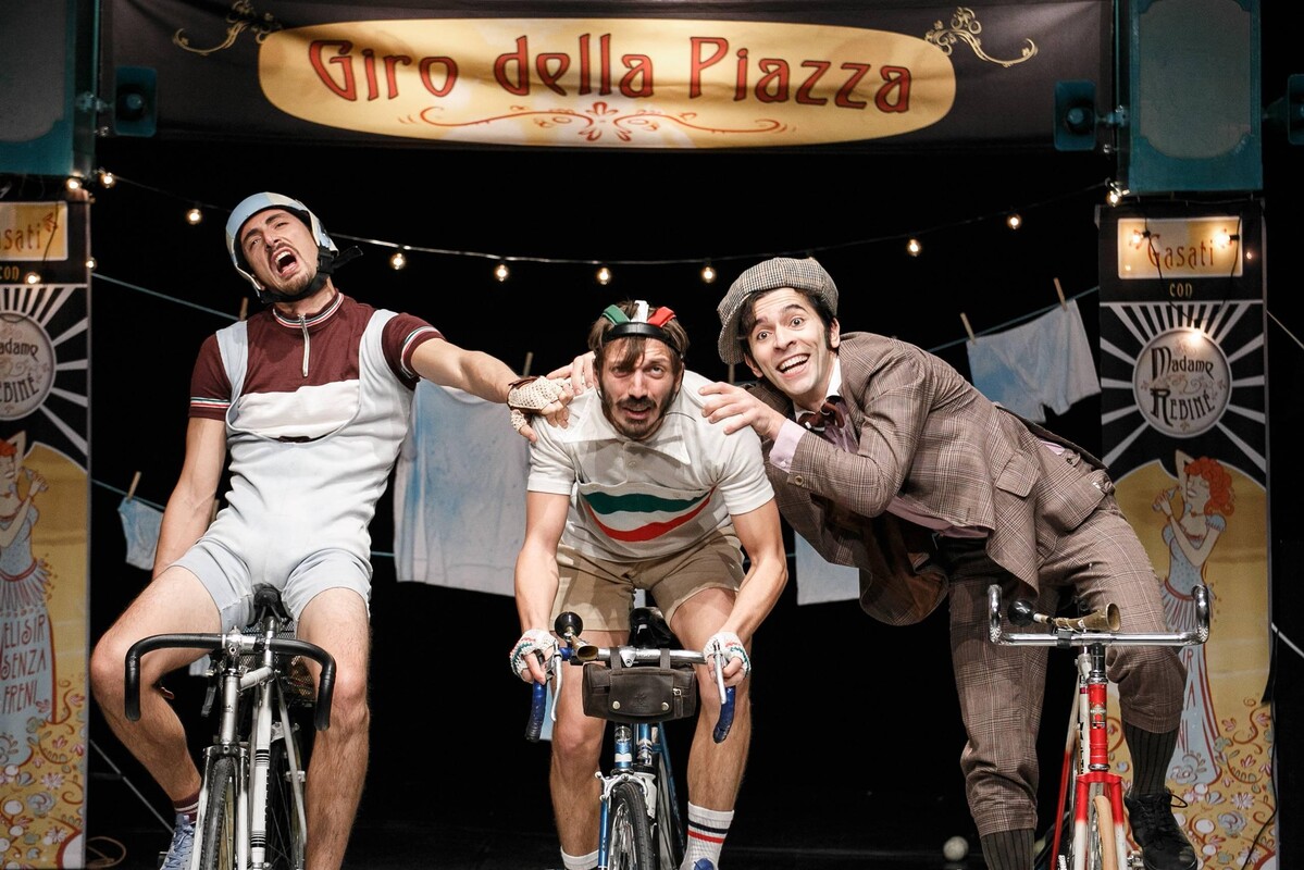 Auf der abenteuerlichen Runde um den Platz inszeniert die Compagnie Madame Rebiné einen surrealen, komischen Radrennen, der den Charme großer Sportveranstaltungen versprüht, jedoch mit einigen zusätzlichen Rädern und einer reichhaltigen Portion Gags. Die Strecke ist tückisch, die Rivalen hart: Auf der einen Seite Andrea Brunello, ein schneller, schlanker und, wie er selbst sagt, unwiderstehlich gutaussehender Radfahrer; auf der anderen Seite Tommaso, mit seiner großen Nase und seiner ansteckenden Entschlossenheit. Wer wird sich durchsetzen? Um das herauszufinden, müssen Sie nur auf den Platz gehen, Ihren Favoriten auswählen und ihn lautstark anfeuern!