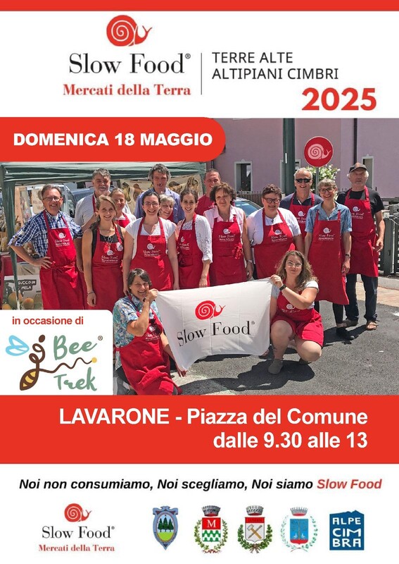 Erzeuger, die sich der Slow Food-Gemeinschaft für die landwirtschaftlich-kulturelle Entwicklung des Hochlandes von Cimbri angeschlossen haben, treffen sich mit dem Slow Food-Markt der Erde, anlässlich des Bee Trek. Öffnungszeiten: von 09:30 bis 13:00 Uhr Ort: Lavarone Gionghi, Gemeindeplatz