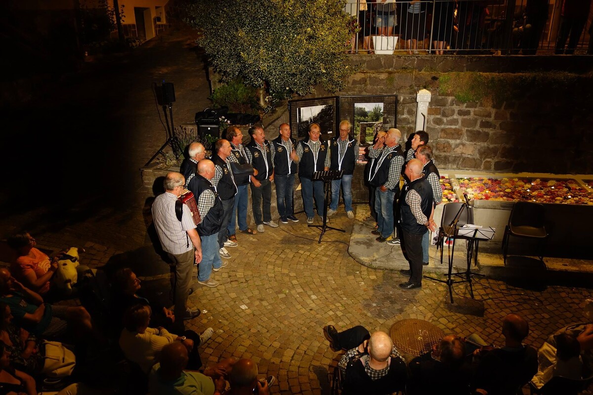 Im Rahmen des traditionellen Sommermusikfestes singt der "Gh'era 'na volta" Chor ein reichhaltiges Repertoire an beliebten Volksliedern auf dem Dorfplatz
