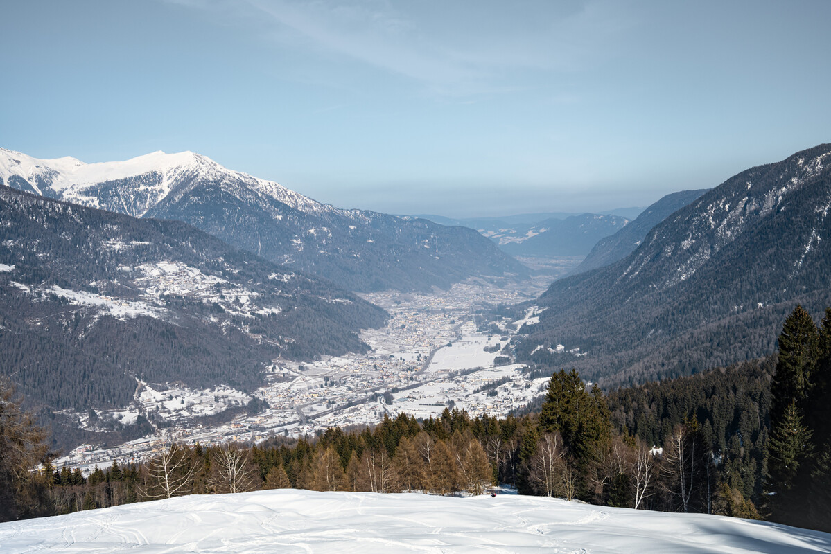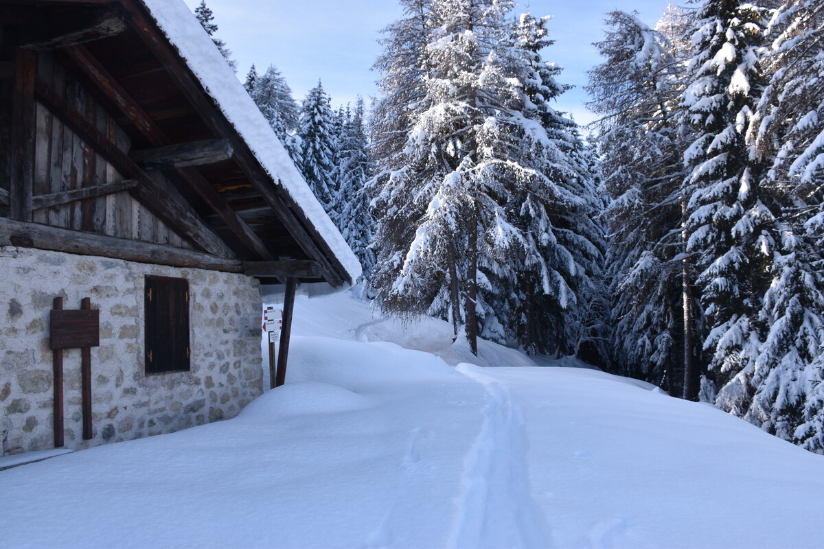 Ein ruhiger Spaziergang, der sich in der Ruhe und Stille des Waldes bis zum Malghetto di Almazzago entwickelt, einer natürlichen Panoramaterrasse mit spektakulärem Blick auf das Val di Sole.