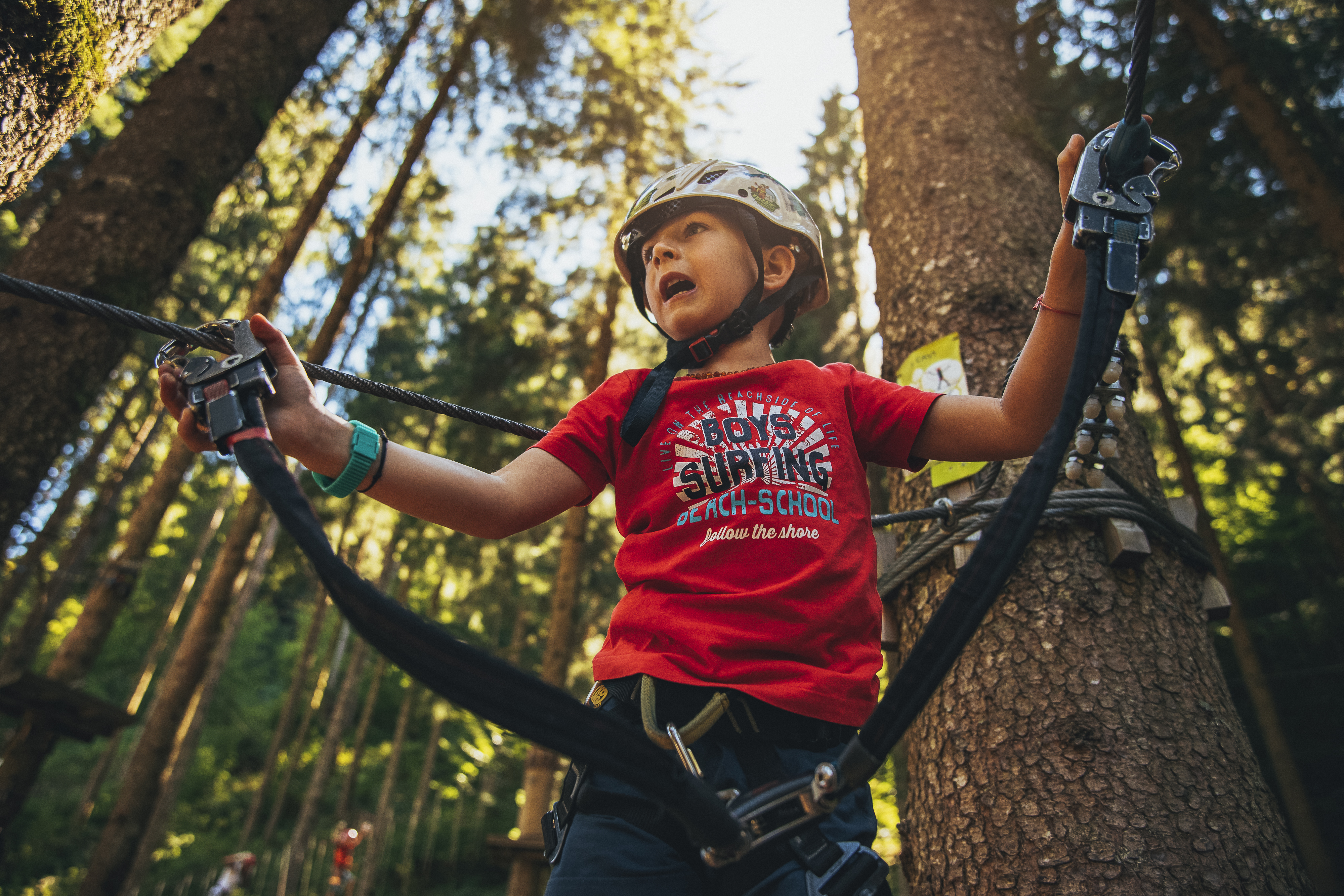 Das Abenteuergelände des Dolomiti Action Adventure Park mit acht unterschiedlichen Parcours verspricht den richtigen Mix aus Abenteuer und Natur. Er ist direkt an einem Radweg durch das Val di Fassa gelegen und für Kinder, Jugendlich und Erwachsene konzipiert. Seilwände, Schwebebahnen, Nepal-Brücken und Laufstege sorgen für echten Nervenkitzel.