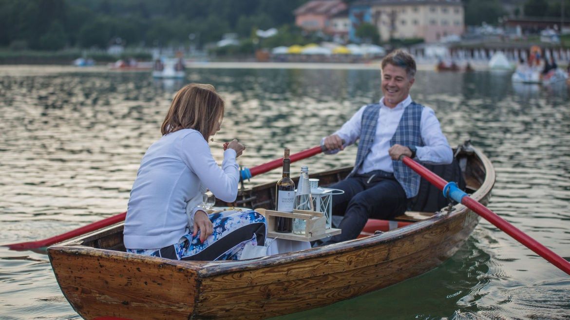 Auf dem smaragdgrünen Wasser des Lavarone-Sees, bekommen Gäste die Gelegenheit ein privates Dinner auf einem kleinen Vintage Ruderboot zu genießen. Um 18 Uhr beginnt das Erlebnis mit einem Willkommensdrink. Die drei Gänge werden direkt von den beiden Piers serviert. Für die Stimmung ist außerdem ein weiteres Boot mit Band mitten auf dem See und sorgt für melodische Klänge und romantischer Atmosphäre. https://bit.ly/3gWrORH