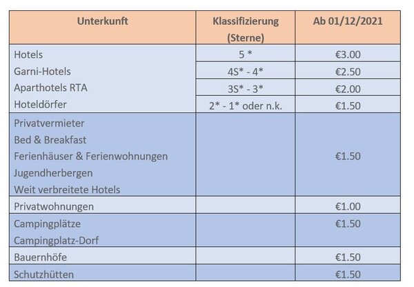Auf der Website von Trentino Riscossioni finden Sie alle Informationen und Preistabellen (in italienischer Sprache).