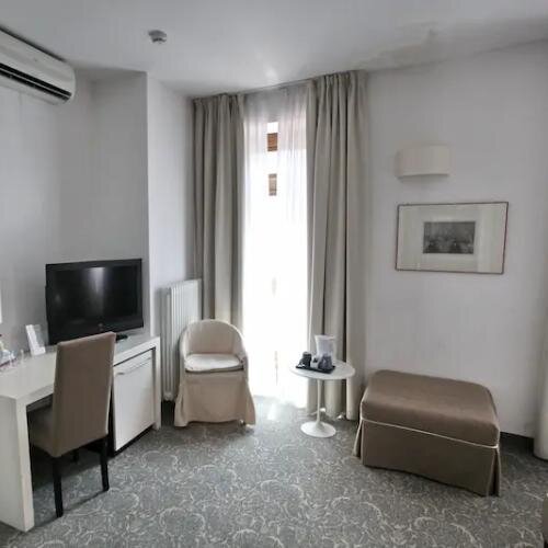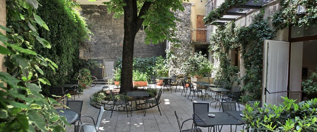 Das Hotel Accademia befindet sich in das historische Stadtzentrum Trento, beruehmtes Haupstadt der Trentino, wo Kultur, Kunst und Natur sich treffen und "ein iteressantes Blick " auf den Zusammentrifft des Italienischen-und des Mitteleuropaeischen Kulturs den zahlreichnen Besucher angeboten wird. Alles dies dank die wichtigsten Palaesten, die Glockentuerme, die verschiedenen Kirchen, die maerchenhaften Denkmaeler und die alten Haesuer mit Renaissance-Fresko; die Erneuerungsarbeiten haben die ehemalige zaubernde Atmospaehre der Stadt geschenkt. Unser Hotel befindet sich in einer guenstigen Lage, in der Naehe des beruehmten Buonconsiglio-Schloss und des Domplatz. Das Hotelsitz ist ein altes Haus des Stadtzentrums, das bei den letzten Jahren renoviert wurde und die ehemalige architektonische Eindruck wiederbekommen hat.Der Hof ist heute einen Garten, mit Stuehlen und Tischen eingerichtet, wo unsere Gaeste ein ausruhendes Fruehstuek oder ein angenehmes Abendessen "in Kerzenlicht" geniessen koennen.