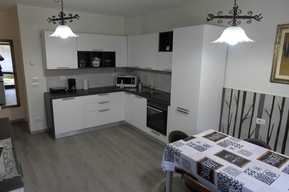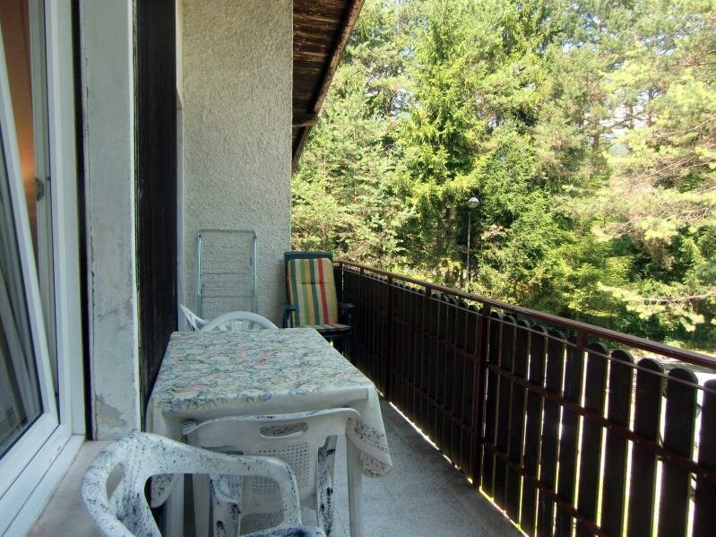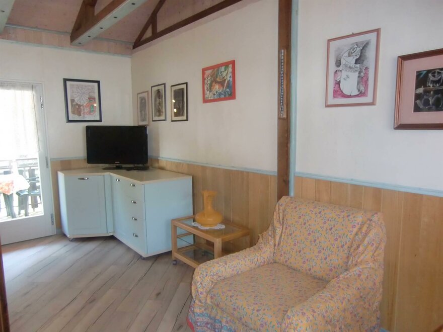 Die Wohnung befindet sich im ersten Stock und besteht aus einem Wohnzimmer mit Küchenzeile, Sofa und Kamin, einem Schlafzimmer mit Doppelbett, einem Schlafzimmer mit 2 Betten, einem Badezimmer mit Dusche, einem großen Gemeinschaftsgarten mit Swimmingpool mit Bademeister, geöffnet vom 01.07.2025 bis 31.08.2025.