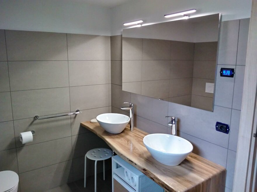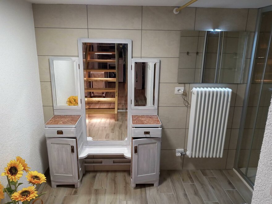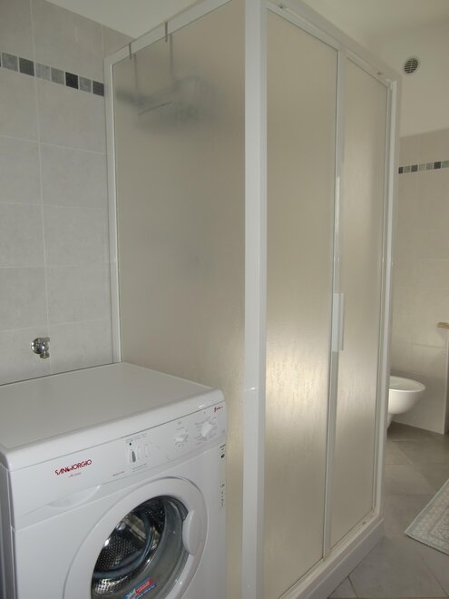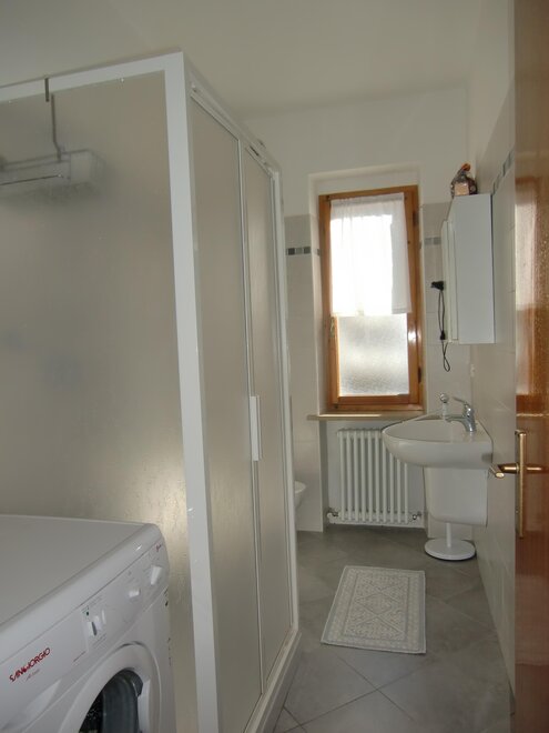 Dann finden wir eine Waschküche und ein geräumiges Badezimmer mit Service und