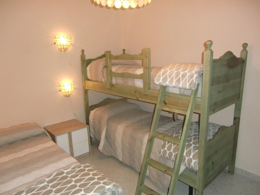 Die Wohnung Bellavista mit ca. 70 m² befindet sich in einer kleinen Eigentümergemeinschaft. Sie besteht aus einem Wohnraum mit einer eingerichteten Küchenzeile, einem Schlafzimmer mit Doppelbett, einem Zimmer mit Stockbett und Einzelbett, Bad mit Dusche und Toilette und einer wunderbaren Terrasse von 20 m² zum Ausruhen und Sonnenbaden.