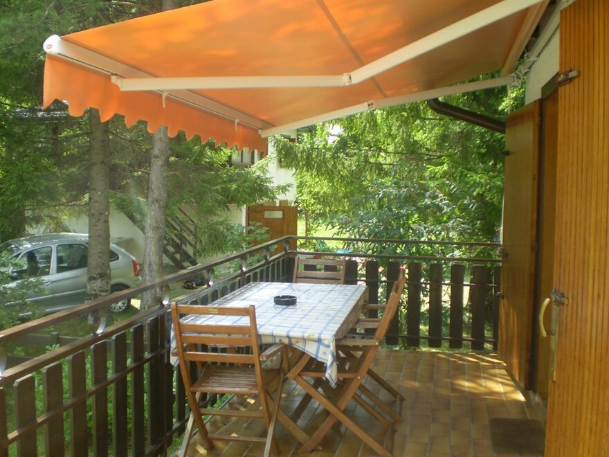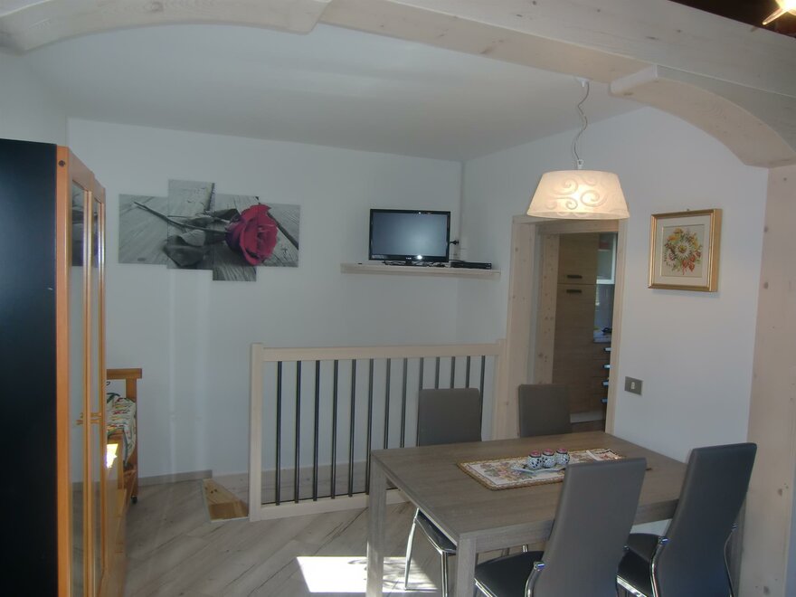 Die Wohnung Bellavista liegt oberhalb des charakteristischen Dorfs Mezzolago. Von der Privatterrasse der Wohnung genießt man ein eine wunderbare Aussicht auf den Ledrosee und die Landschaft der Umgebung.