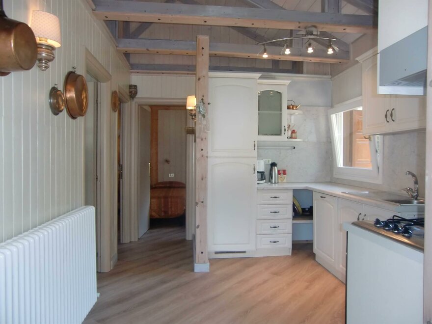 Zubehör: Kühlschrank mit Tiefkühlfach, Gasbackofen, vierflammiger Gasherd, Geschirrspülmaschine, Waschmaschine.Ausstattung Zimmer/Appartement