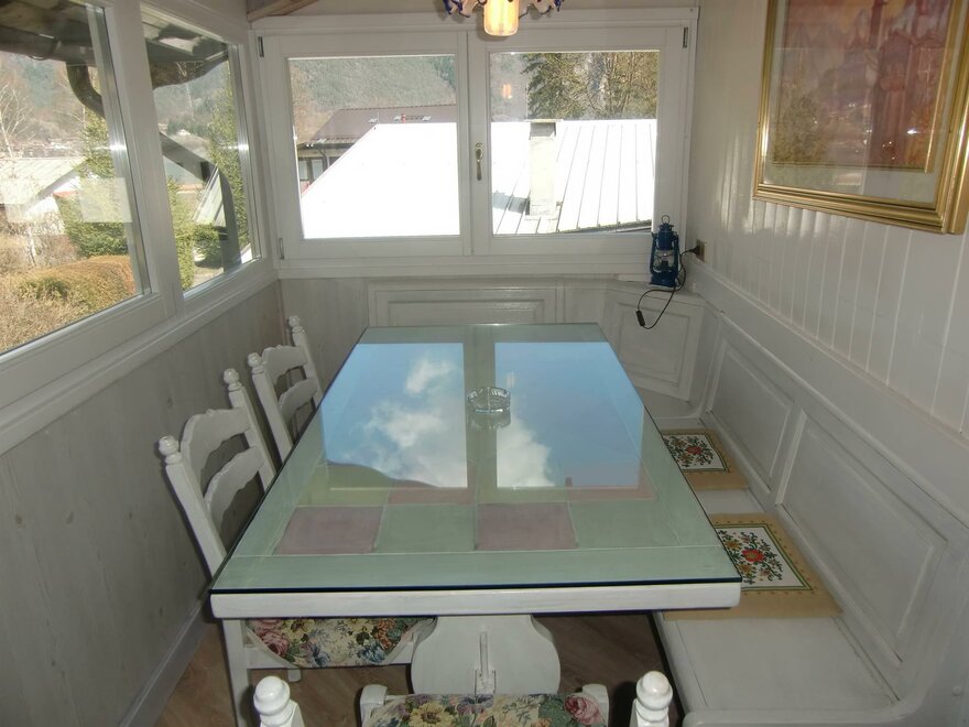 Im Erdgeschoss befindet sich ein Raum, der durch ein großes Fenster direkt mit dem Garten