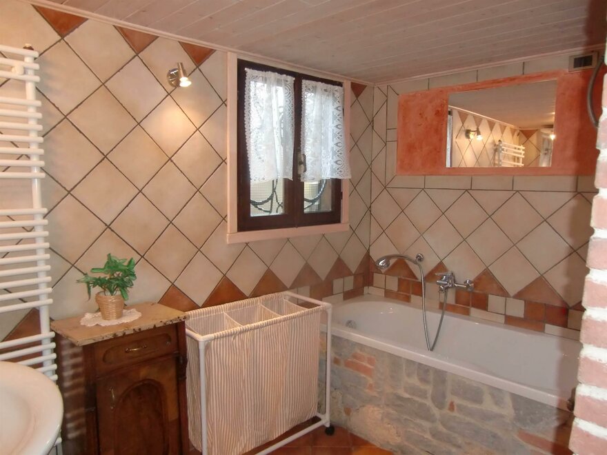 Die Wohnung wurde unter Berücksichtigung der für das Haus zeittypischen Epoche renoviert(siehe die Gewölbe), durch Einsatz von für die Gegend typischem Material wie Fussböden aus Feinsteinzeug, Fensterpfosten aus Granit, Innentüren aus gebürstetem Tannenholz und einem Trennbogen aus Stein