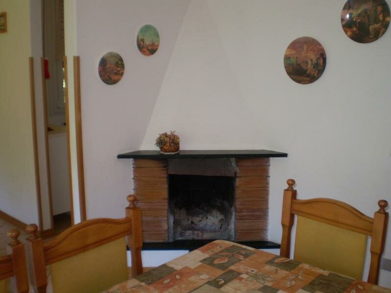 Das Haus ist in zwei Stockwerke aufgeteilt: das Erdgeschoss beinhaltet: Wohnzimmer mit Couch, Sessel, Kamin für Holzfeuer, Tisch mit Stühlen, Satelliten TV und Waschmaschine.
