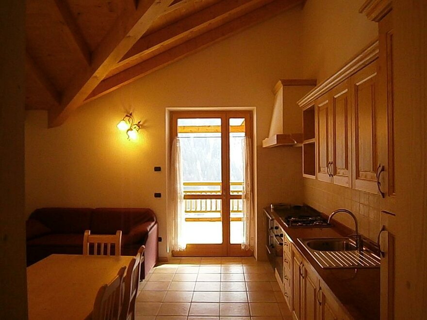 Bright and comfortable apartment with mansard roof composed of a fully furnished kitchen, a living room with sofa-bed and color tv, two spacious bedrooms with wooden furniture in accordance to the typical mountain-style, a toilet/shower, panoramic balcony where you can enjoy a beautiful view on the valley . Private car park in the guesthouse’s yard. Linen is available only on request at the time of booking and little pets are always welcome.