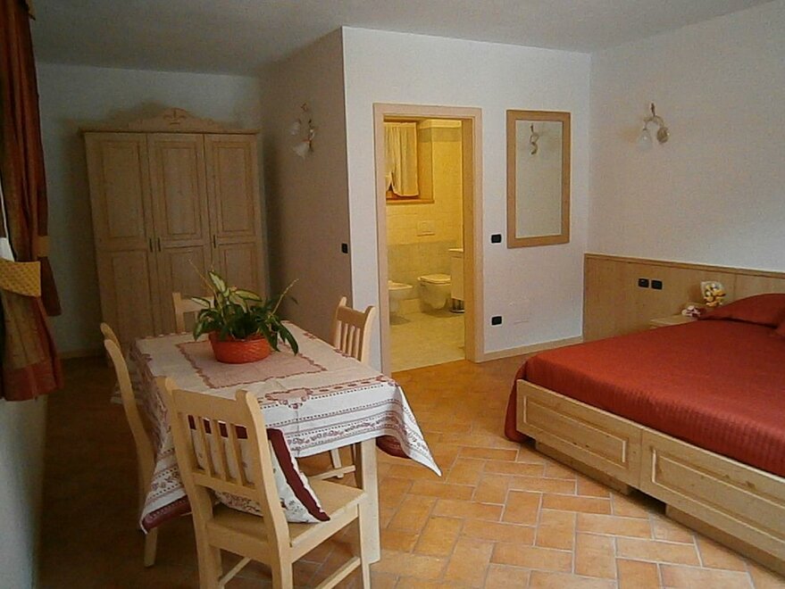 Lovely and spacious double room in the typical mountain style with private toilet/shower, third accommodation in armchair bed, desk and color tv where comfort, simplicity and quiet mix together to give you a pleasant stay. Little pets are welcome.