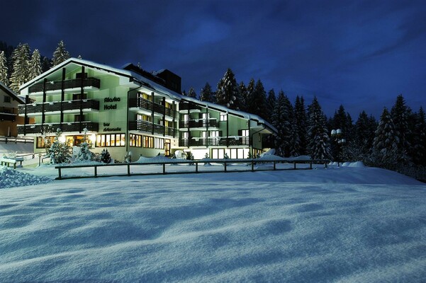 Lounge-Bar mit Panoramaterrasse mit Blick auf die Brenta-Dolomiten, Restaurant, Solarium mit Liegestühlen, Miniclub, kleiner Entspannungsbereich mit Sauna und Dampfbad. Ein Grillrestaurant à la carte direkt an der Skipiste.