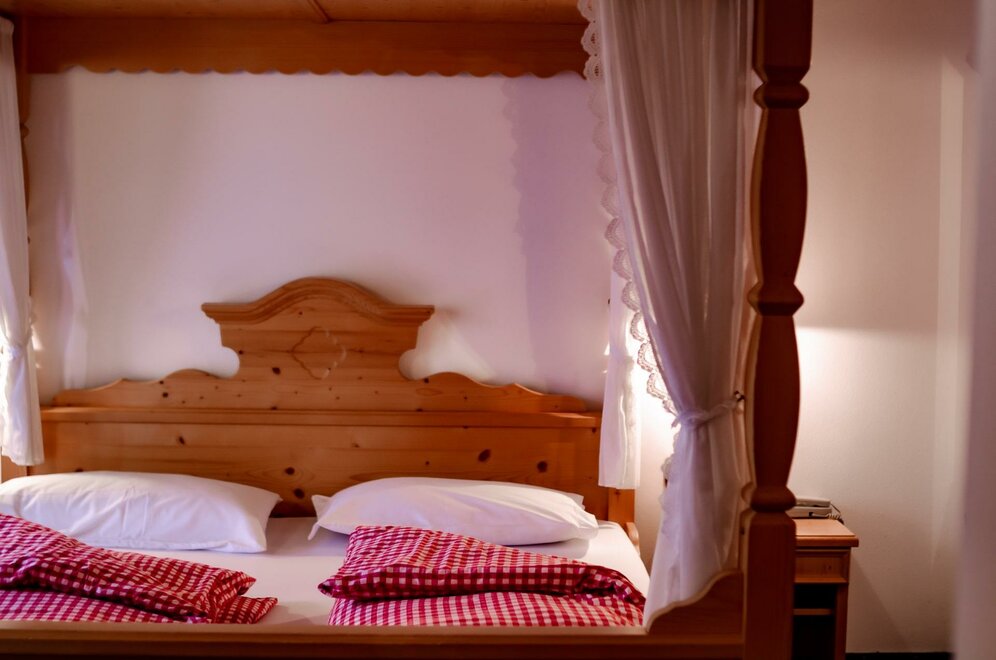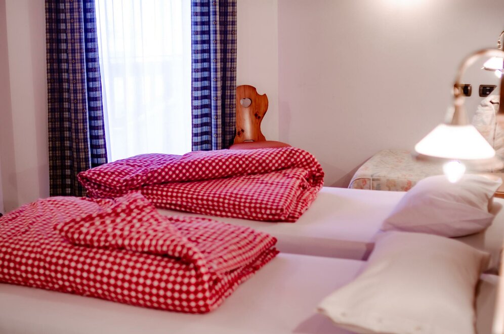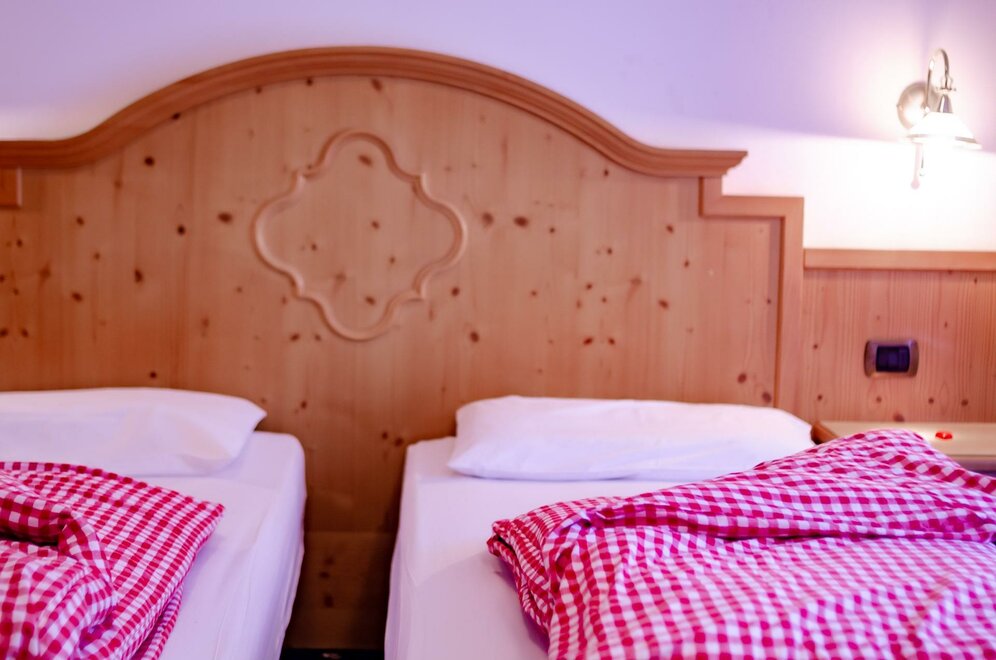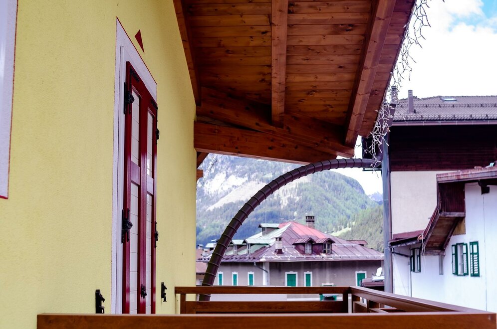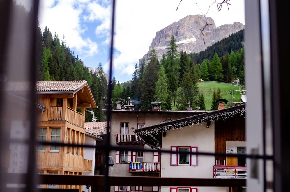 Sie blicken in die Berge des wunderschönen Val di Fassa.Lassen Sie sich von unseren Zimmern verwöhnen, in denen ich Lattenrosten aus Holz und ausgewählte Matratzen habe, um dem Kunden nach einem intensiven Sport-Tag den nötigen Komfort zu bieten.