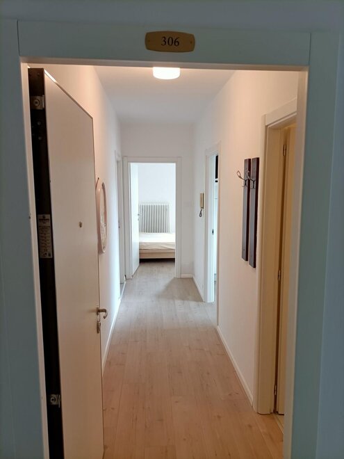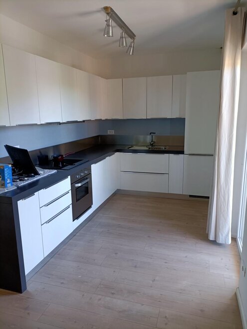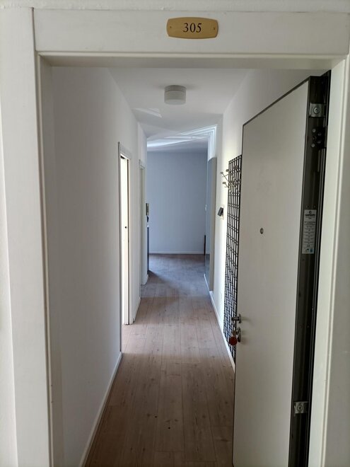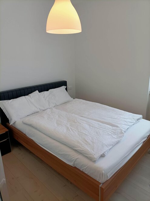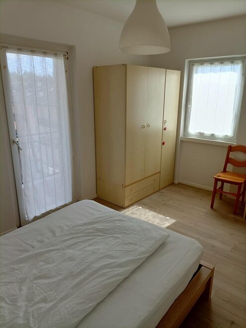 Geräumige Familienwohnung im dritten Stock. Bestehend aus 2 Doppelzimmern, einem geräumigen Wohnzimmer mit einem Schlafsofa, privatem Balkon zur Gartenseite. Küche ausgestattet mit Induktionsherd, Dunstabzugshaube, Kühlschrank und Geschirr.