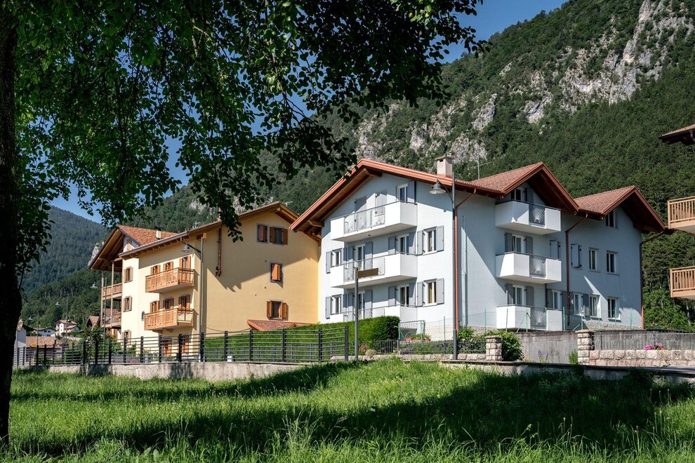 Wir befinden uns in Fai della Paganella in Trentino, im Herzen der Brenta-Dolomiten, im wunderschönen Klima des Paganella-Plateaus, mit zwei modernen Gebäuden, die sich in malerischer Lage in der Nähe von Wanderwegen und wichtigen Dienstleistungen befinden.