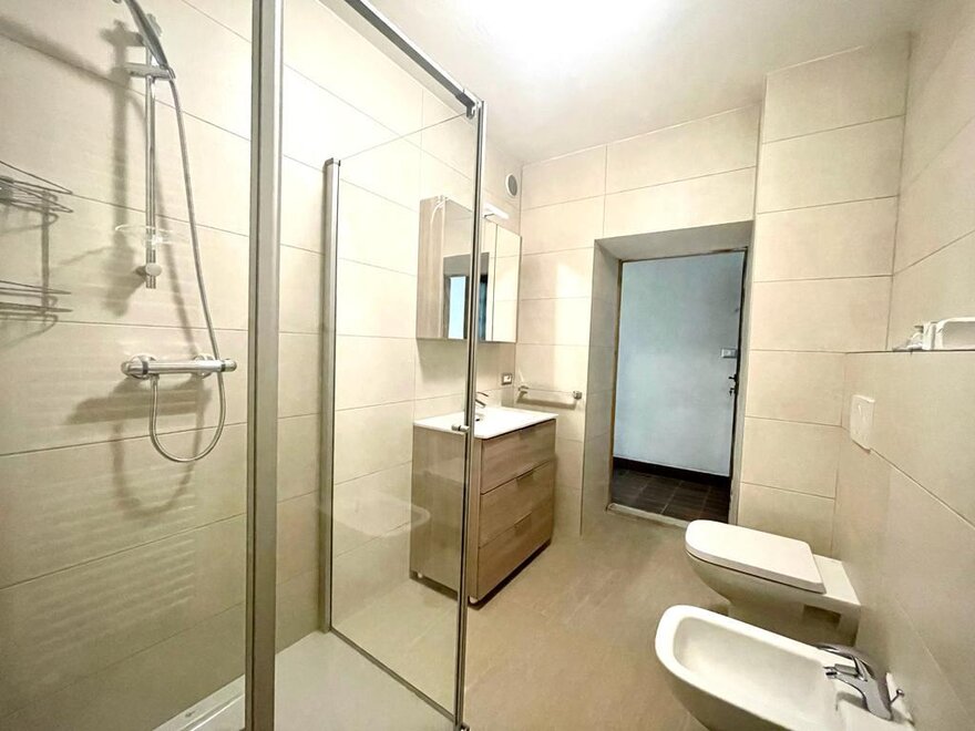 The apartment consists of a kitchen - living room with sofa, 3 bedrooms (two single beds per room), 2 bathrooms, one of this accessible from the bedroom, 3 balconies (one accessible from the living room / kitchen, the other two from bedrooms).