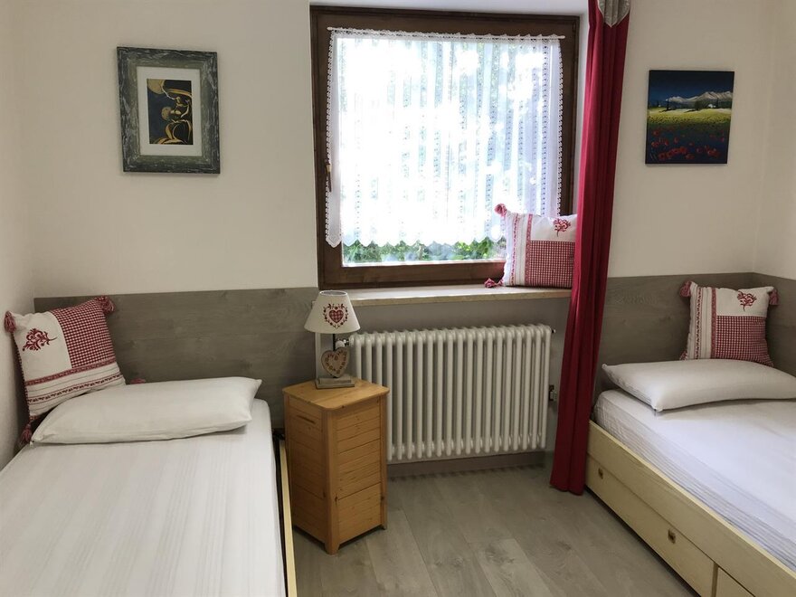 Erdgeschosswohnung, unabhängiger Eingang, umgeben von Wiesen, in einer ruhigen Gegend, aber nah zum Zentrum, 2 km von den Skiliften entfernt. Majestätische Ansicht der Lagorai-Kette.