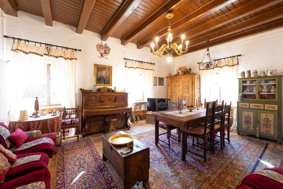Beim Betreten der Dimora Storica Lessinia finden Sie einen geräumigen Eingangsbereich mit einer bequemen Treppe, die zur oberen Etage führt. Im Erdgeschoss befinden sich eine große Wohnküche, das Wohnzimmer, ein Doppelzimmer und ein Badezimmer. Die Küche ist mit einem Steintrog, einem Holzofen, einem Induktionskochfeld, einem Kühlschrank, einer Spülmaschine und zwei Tischen ausgestattet. Im geräumigen Wohnzimmer finden Sie einen Fernseher, zwei Sofas und einen großen Tisch sowie ein antikes Klavier. Das elegante Zimmer verfügt über ein Doppelbett. Schließlich gibt es ein geräumiges und modernes Badezimmer mit Dusche.