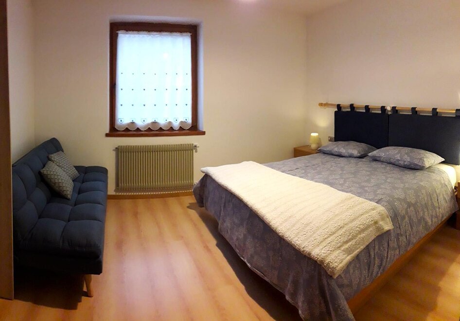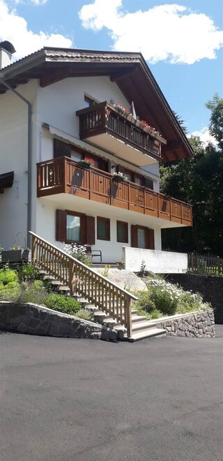 4. Ankunft in Tesero: Wenn du in Tesero angekommen bist, folge den Schildern zu Stava. Nach der Kurve in der via Cerin nimm die Straße, die wieder nach Tesero führt, und biege sofort links in die via Naronchel ab. Die Wohnung Naronchel befindet sich im Haus mit der roten Garage auf der rechten Seite!