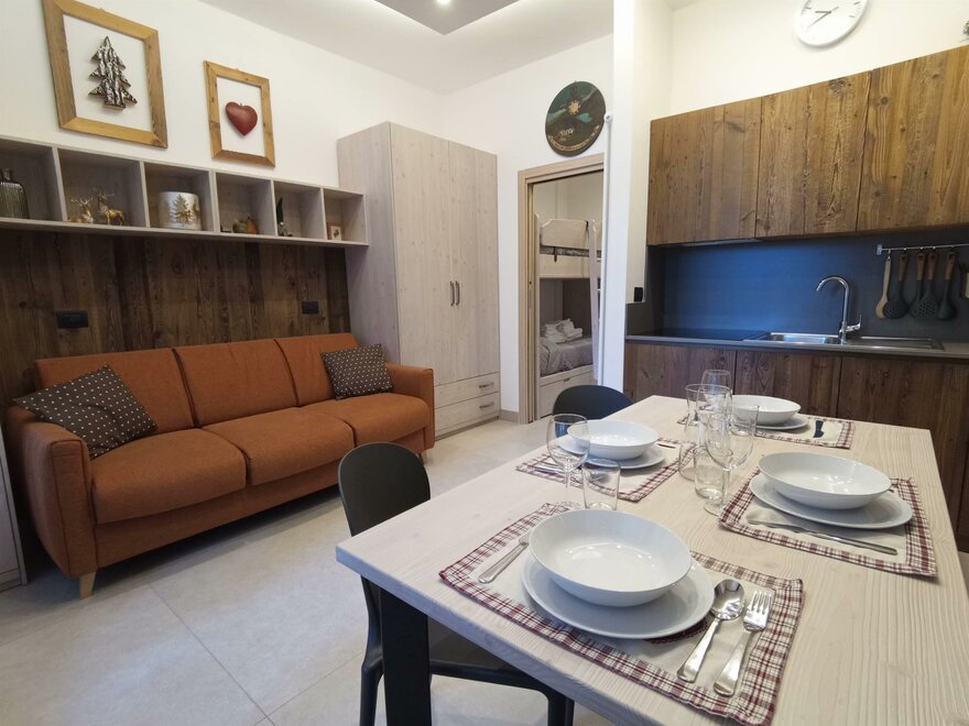 Erdgeschosswohnung, bestehend aus einer Kochnische-Wohnzimmer mit Schlafsofa und Etagenbett, 1 Badezimmer mit Dusche; Terrasse und Parkplatz; Haustiere sind nur kleine Tiere erlaubt. Gesprochene Sprachen: Englisch, Deutsch, Französisch und Spanisch.