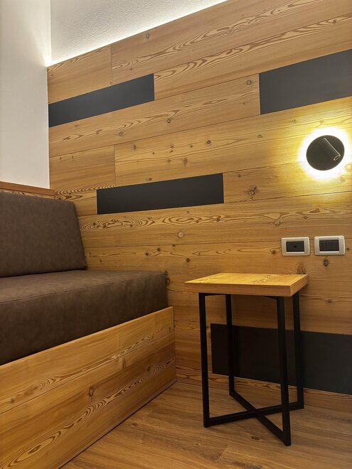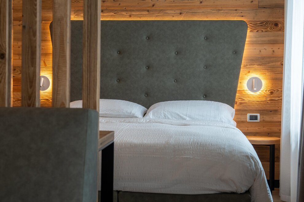 Gemütlich und funktional, das Zimmer 3Tre Comfort ist für diejenigen gedacht, die Raum und Komfort suchen. Es ist im alpinen Stil mit Holzboden eingerichtet (außer in der größeren Version) und bietet Platz für zwei oder drei Gäste in einer entspannenden Umgebung, die Wärme und Praktikabilität vereint. Es verfügt über ein Badezimmer mit Dusche, einen Fernseher, einen Safe und kostenloses WLAN. Auf Anfrage kann es mit Einzelbetten vorbereitet werden.
