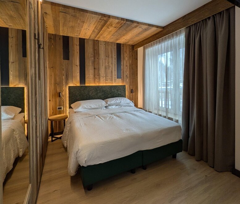 Gemütlich und funktional, das Zimmer 3Tre Comfort ist für diejenigen gedacht, die Raum und Komfort suchen. Es ist im alpinen Stil mit Holzboden (außer in der größeren Variante) eingerichtet und bietet Platz für zwei oder drei Gäste in einer entspannenden Umgebung, die Wärme und Praktikabilität vereint. Es ist ausgestattet mit einem Badezimmer mit Dusche, TV, Safe und kostenlosem WLAN. Auf Anfrage kann es mit Einzelbetten vorbereitet werden.