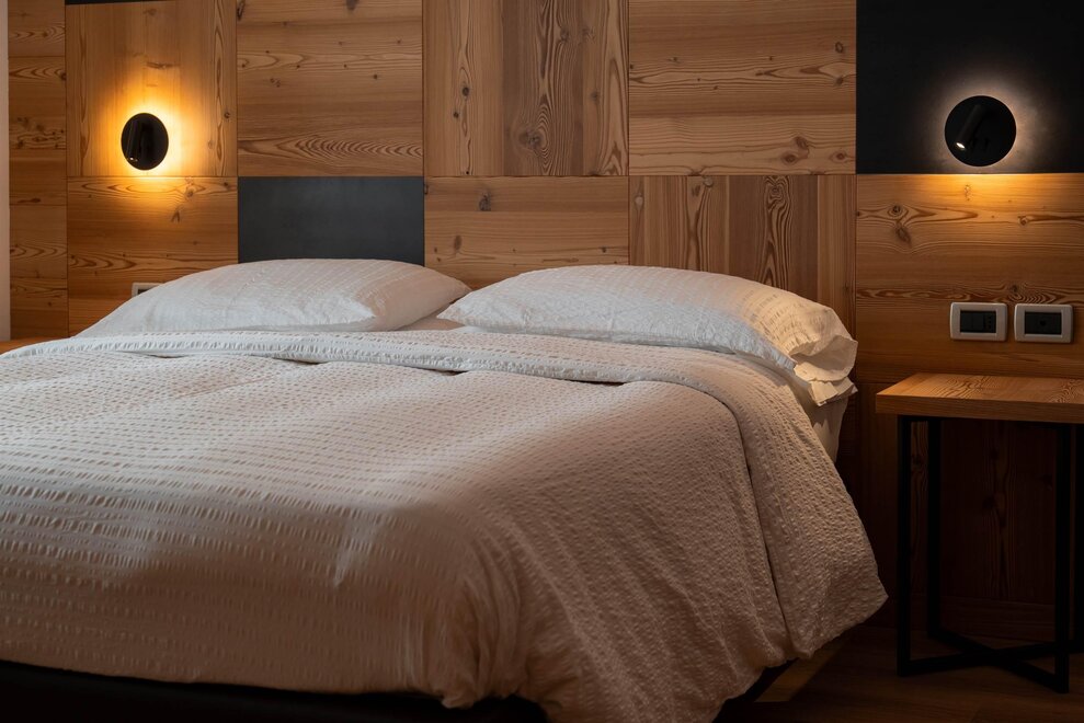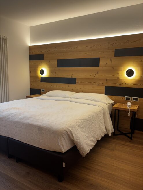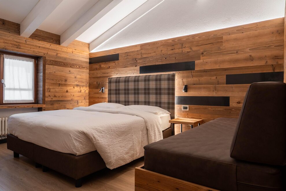 Gemütlich und funktional, das Zimmer 3Tre Comfort ist für diejenigen gedacht, die Raum und Komfort suchen. Im alpinen Stil eingerichtet mit Holzboden (außer in der größeren Version), bietet es zwei oder drei Gästen eine entspannende Umgebung, die Wärme und Praktikabilität vereint. Es verfügt über ein Badezimmer mit Dusche, TV, Safe und kostenloses WLAN. Auf Anfrage kann es mit Einzelbetten vorbereitet werden.